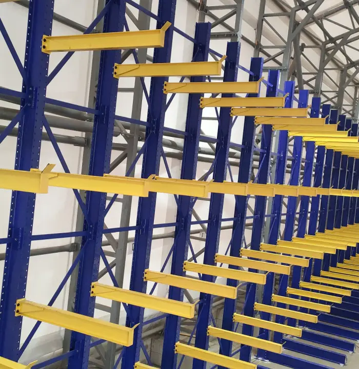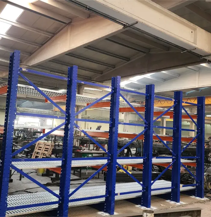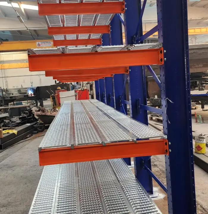 Uzun, ağır ve hacimli malzemelerin depolanmasında kullanılır. Profil, boru, panel, levha ve ahşap gibi ürünler için idealdir.